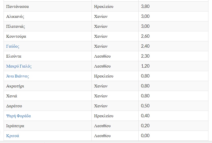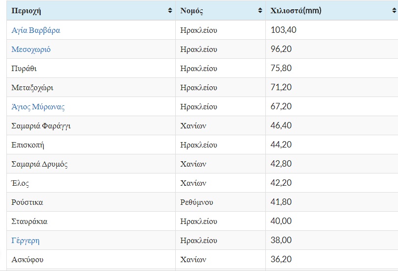 Δείτε που έκανε τα περισσότερα χιλιοστά βροχής ανά περιοχή στην Κρήτη