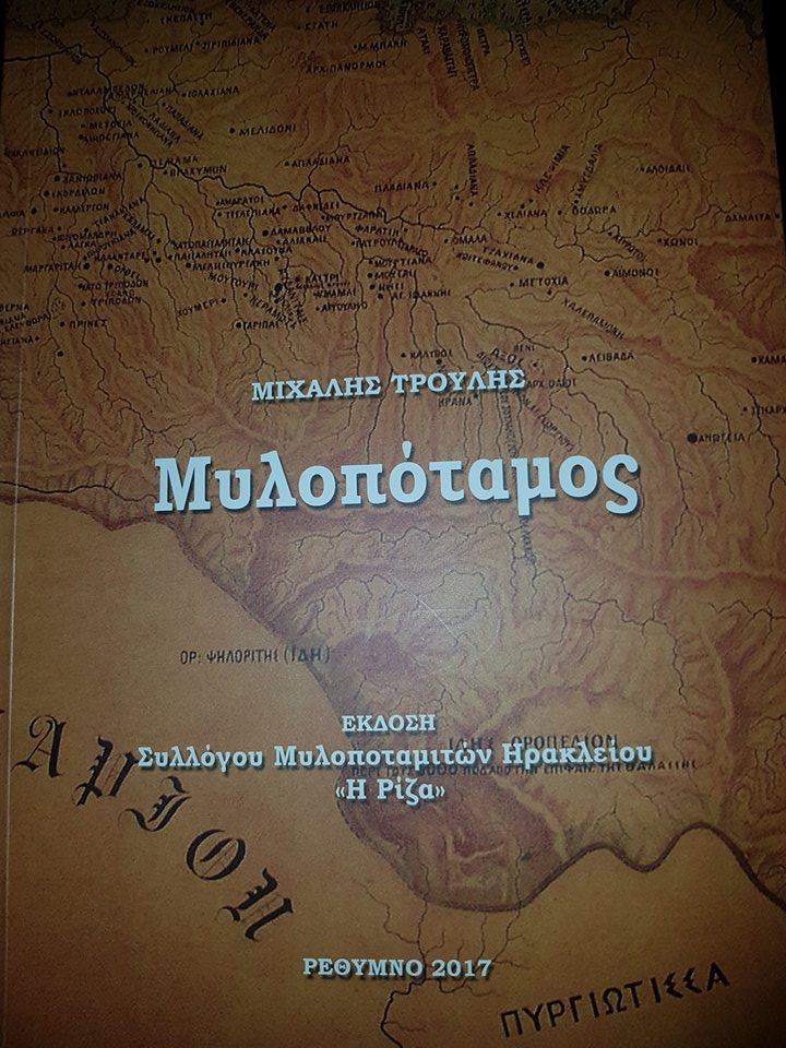 Σήμερα στις 6 το απόγευμα, στο «Θεατρικό Σταθμό Ηρακλείου», έγινε παρουσία πλήθους κόσμου η παρουσίαση του βιβλίου του Μιχάλη Τρούλη, «Μυλοπόταμος», από τον Σύλλογο Μυλοποταμιτών Ηρακλείου «η Ρίζα», με τη στήριξη του Οργανισμού Πολιτισμού-Τουρισμού και Νέας Γενιάς Δήμου Μυλοποτάμου.