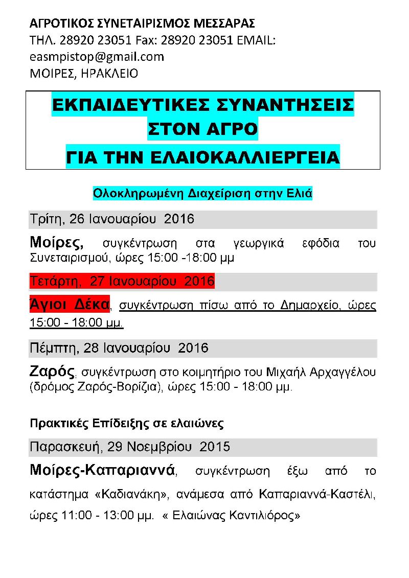 Στους Αγίους Δέκα η εκπαιδευτική συνάντηση έχει προγραμματιστεί την ερχόμενη Τετάρτη 27 Ιανουαρίου και ώρα 3:00 μ.μ. αρχικά στον αύλιο χώρο του Δημαρχείου και έπειτα σε κοντινό αγροτεμάχιο που έχει επιλεγεί.