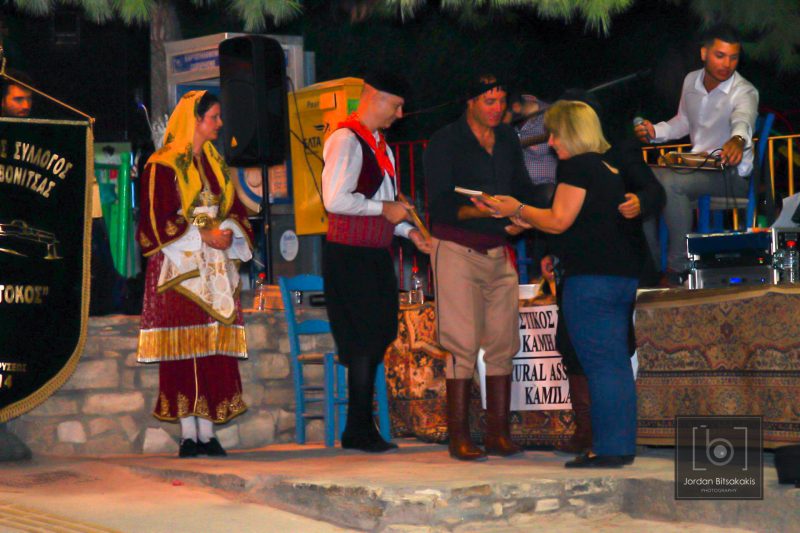 Στην συνέχεια κατευθύνθηκαν στην πλατεία του χωριού όπου συνεχίστηκε η βραδιά μέχρι το πρωί με το συγκρότημα του Λευτέρη Γεωργιλαδάκη και με το Πολιτιστικό Σύλλογο Ακτίου-Βόνιτσας «Η Θεοτόκος» και το παραδοσιακό εργαστήρι Γ. Κουγιουμτζής, πάντα με την φιλοξενία του Πολιτιστικού Συλλόγου Καμηλαρίου.