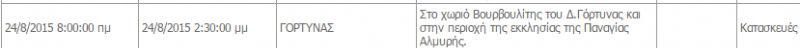 Δείτε στον παρακάτω πίνακα την ώρα και την περιοχή στην οποία θα διακοπεί η ηλεκτροδότηση