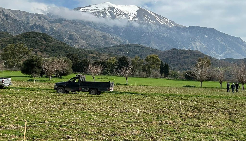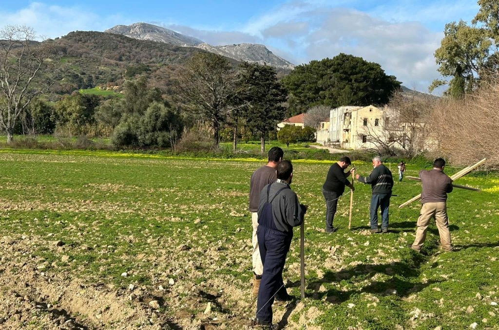 Σήμερα, πραγματοποιήθηκε από εθελοντές, η εργασία του ορισμού των αποστάσεων που θα φυτευτούν τα δέντρα και τοποθετήθηκαν τα σημεία για το άνοιγμα των λάκκων.