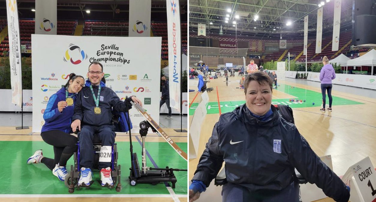 «O Πρόεδρος Γιώργος Καπελλάκης και η Ολομέλεια της Ελληνικής ΠαραολυμπιακήςΕπιτροπής συγχαίρουν τον Γρηγόρη Πολυχρονίδη και τη sport assistant του, Κατερίνα Πατρώνη, για την κατάκτηση του χρυσού μεταλλίου στην κατηγορία BC3 Ανδρών στο Ευρωπαϊκό Πρωτάθλημα μπότσια.