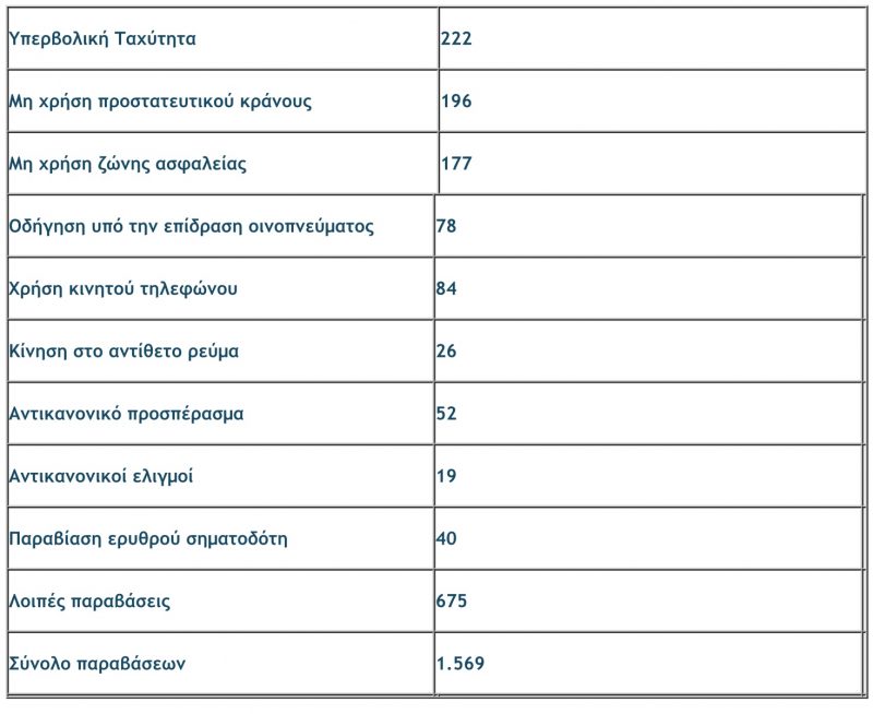 Συγκεκριμένα, συγκροτήθηκαν 183 συνεργεία ελέγχων ενώ πραγματοποιήθηκαν εκτεταμένοι τροχονομικοί έλεγχοι σε οχήματα, σε διάφορες περιοχές της Κρήτης, όπου ελέγχθηκαν συνολικά 4.264 οχήματα, και βεβαιώθηκαν 1.569 παραβάσεις, ως ακολούθως: