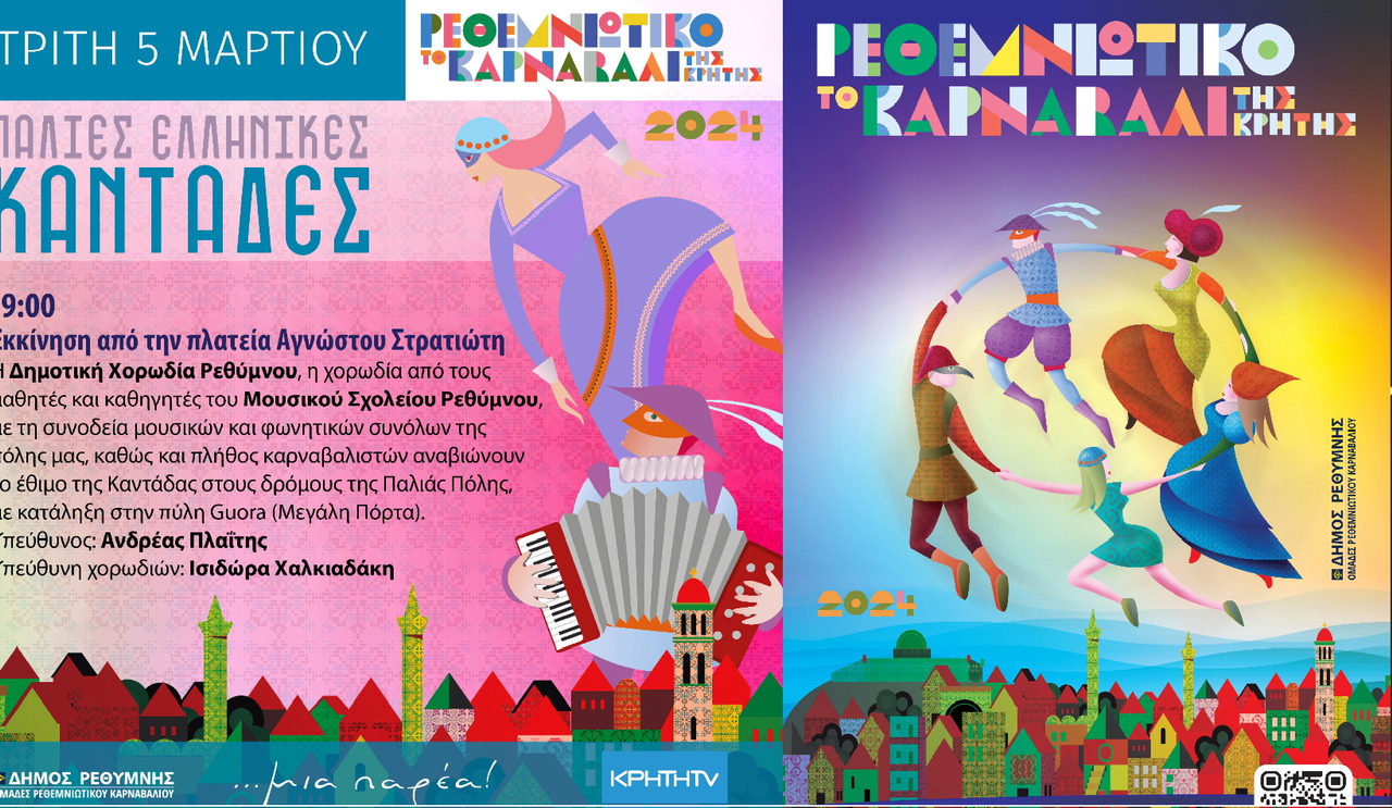 Η Δημοτική Χορωδία Ρεθύμνου, η χορωδία από τους μαθητές και καθηγητές του Μουσικού Σχολείου Ρεθύμνου, με τη συνοδεία μουσικών και φωνητικών συνόλων της πόλης μας, καθώς και πλήθος καρναβαλιστών θα αναβιώνουν το έθιμο της καντάδας στους δρόμους της Παλιάς Πόλης.