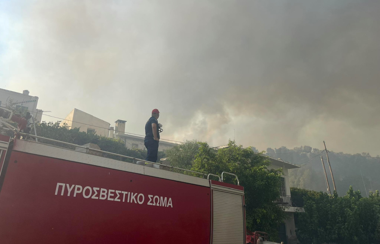Στο σημείο συνδράμουν και δύο αεροσκάφη τύπου υδροπλάνων, ενώ αναμένεται έκτακτη συνδρομή από την Αθήνα για τη διαχείριση της κατάστασης.