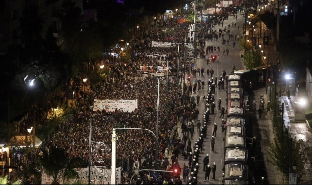 Φοιτητικοί σύλλογοι με σύνθημα «οι εξεγέρσεις δεν μπαίνουν στα μουσεία, εμπρός για της γενιάς μας τα Πολυτεχνεία», φορείς, ο ΣΥΡΙΖΑ, το ΠΑΣΟΚ- ΚΙΝΑΛ, το ΜέΡΑ 25, κόμματα κι οργανώσεις της εξωκοινοβουλευτικής αριστεράς, εργατικά σωματεία και συλλογικότητες του αντιεξουσιαστικού χώρου συγκεντρώθηκαν στην Πλατεία Κλαυθμώνος και κατευθύνθηκαν προς την αμερικάνικη πρεσβεία.