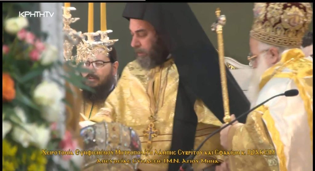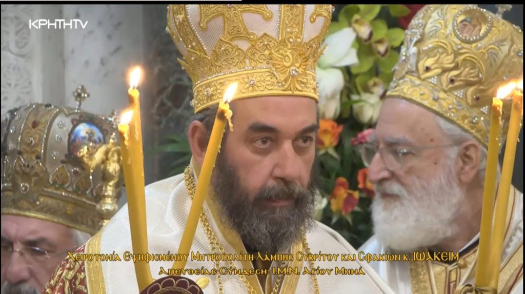 Σε κλίμα συγκίνησης και θρησκευτικής κατάνυξης πραγματοποιήθηκε η τελετή χειροτονίαςτου νέου Μητροπολίτη Λάμπης, Συβρίτου και Σφακίων Ιωακείμ Καρανδινού, στον Ιερό Μητροπολιτικό Ναό του Αγίου Μηνά στο Ηράκλειο.