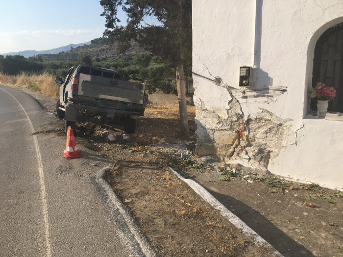 Ι.Χ. Αυτοκίνητο ερχόμενη από Τυμπάκι προς μοίρες, κάτω από αδιευκρίνιστες συνθήκες ο οδηγός έχασε τον έλεγχο με αποτέλεσμα στην κυριολεξία να καρφωθεί στον ιερό ναό του Αγίου Ονούφριου.