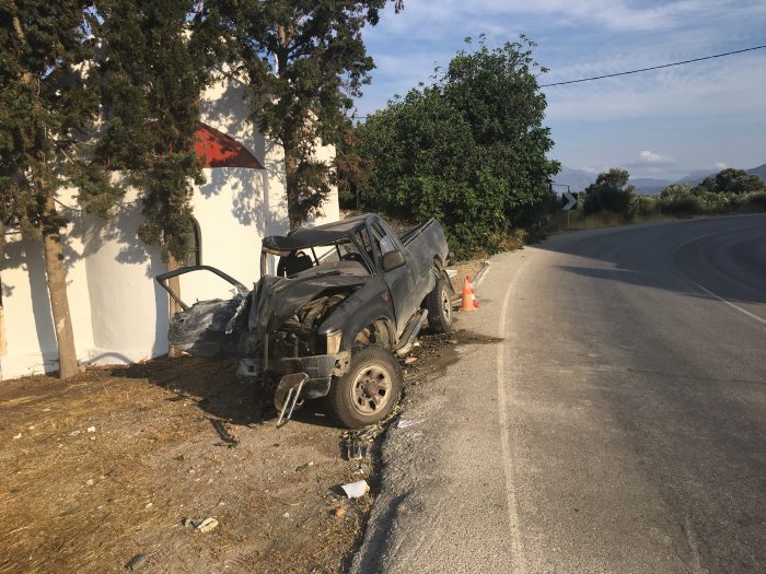 Αποτελεσμα της σφοδρής σύγκρουσης το αυτοκίνητο καταστράφηκε ολοσχερώς και τους δυο επιβαίνοντες να εγκλωβίζονται σε αυτό.