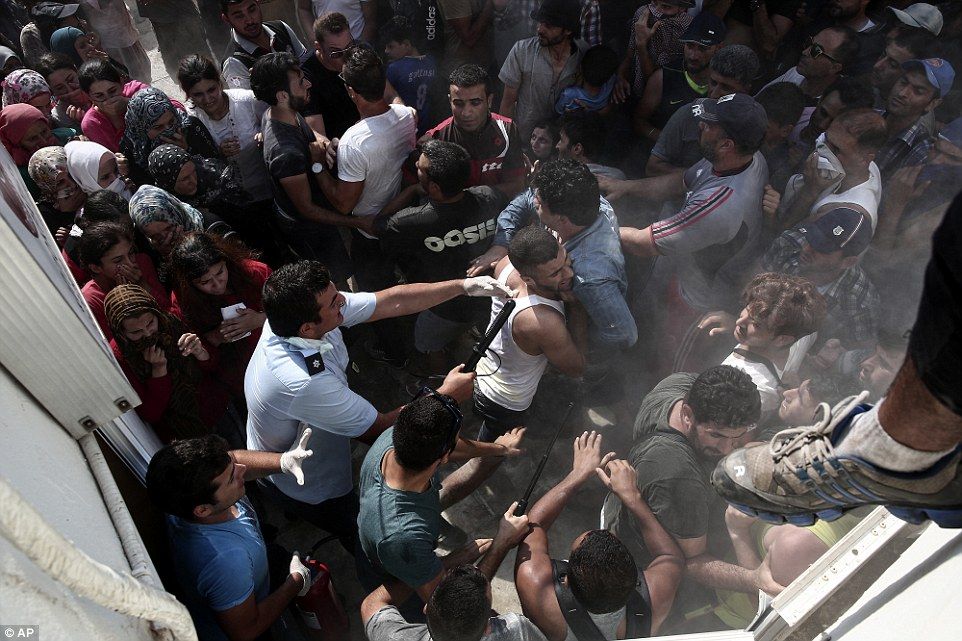 Οι αστυνομικοί προσπάθησαν ακόμη και με πυροσβεστήρες να απωθήσουν τους μετανάστες, οι οποίοι είχαν κλείσει τον κεντρικό δρόμο του νησιού ενώ κάποιοι από αυτούς πετούσαν ακόμη και μπουκάλια σε διερχόμενα αυτοκίνητα.