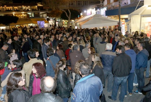 Στη διαμαρτυρία βρίσκεται και ο ίδιος ο αντιδήμαρχος κ. Πέτρος Ινιωτάκης, ο οποίος δέχεται ευχές από το πλήθος που έχει συγκεντρωθεί, για γρήγορη ανάρρωση.