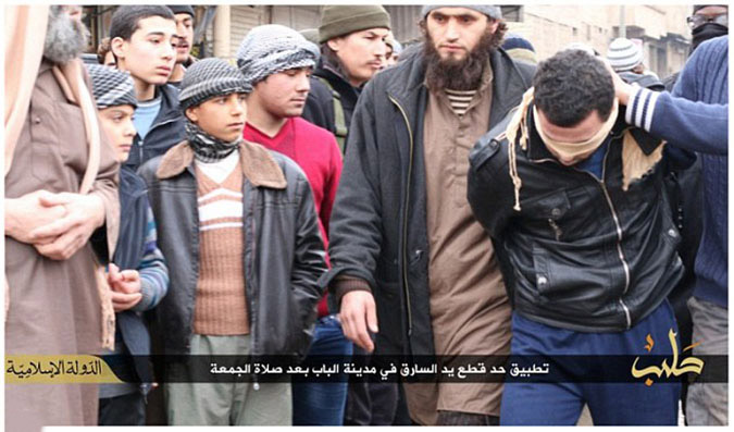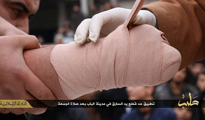Το νέο «χτύπημα» των τζιχαντιστών έρχεται από τη Συρία όπου, όπως απεικονίζεται και στις παρακάτω εικόνες, οι ακραίοι Ισλαμιστές κόβουν το χέρι ενός άντρα, ο οποίος κατηγορείται για κλοπή.