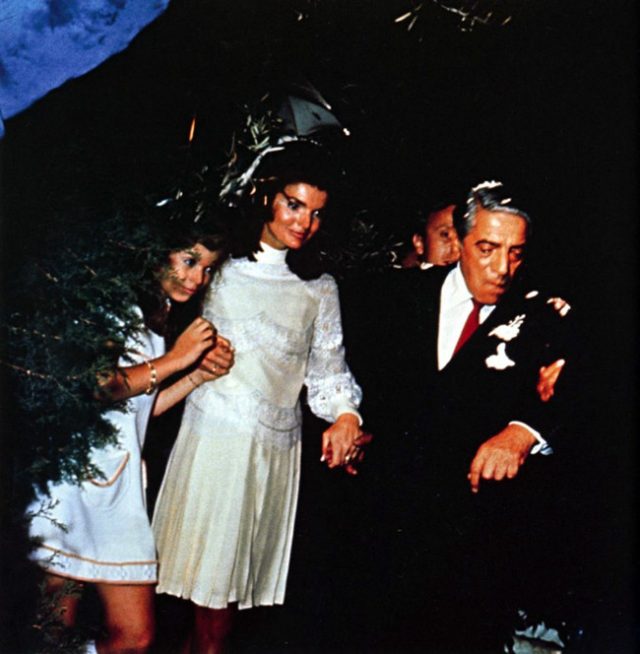 Εκείνη τη μουντή φθινοπωρινή ημέρα που οι ψιχάλες έσταζαν από τον γκρίζο ουρανό ο Έλληνας μεγιστάνας παντρευόταν την πρώτη κυρία των ΗΠΑ Ζακλίν Μπουβιέ Κένεντι. Εκείνη 39 ετών εκείνος 62.