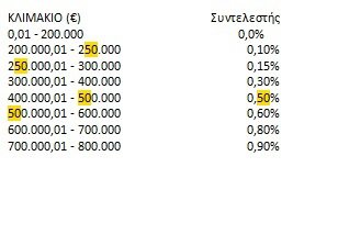 Για κάθε φυσικό πρόσωπο ο συμπληρωματικός φόρος επιβάλλεται και υπολογίζεται στη συνολική αξία των δικαιωμάτων της παραγράφου 2 του άρθρου 1, σύμφωνα με τα κλιμάκια και τους συντελεστές του παρακάτω πίνακα: