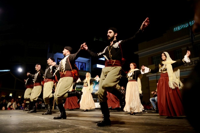 Η 6ωρη εκδήλωση ολοκληρώθηκε στην εξέδρα γύρω στις 12 τα μεσάνυχτα ωστόσο συντελεστές, χορευτές, μουσικοί, θεατές και περαστικοί έγιναν μία παρέα και συνέχισαν το χοροστάσι στο “Στέκι του Αετογιάννη” μπροστά από το “Σπιτάκι του Άη Βασίλη”, δίπλα στο “Ζαχαρόσπιτο” μέσα στο Χριστουγεννιάτικο Χωριό της πλατείας. Υπό τους ήχους της ασκομαντούρας και των υπόλοιπων μουσικών οργάνων όλοι μαζί χόρεψαν, τραγούδησαν και ευχήθηκαν καλές γιορτές. Μουσικά συνόδευσε το συγκρότημα “ΜΟΥΣΙΚΟΙ ΧΡΟΝΟΝΑΥΤΕΣ” (Γιώργος Ρασούλης, Αντώνης Αντωνιάδης, Δημήτρης Μανουσάκης, Μύρων Χαιρέτης)