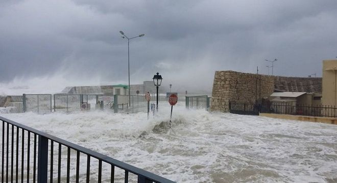 Την ίδια ώρα, δεμένα παραμένουν τα πλοία στο λιμάνι του Ηρακλείου ενώ λόγω των ισχυρών ανέμων τα κύματα υψώνονται πάνω από τους κυματοθραύστες και το Ενετικό φρούριο του Κούλε, αλλά και σε πολλά σημεία της παραλιακής λεωφόρου.