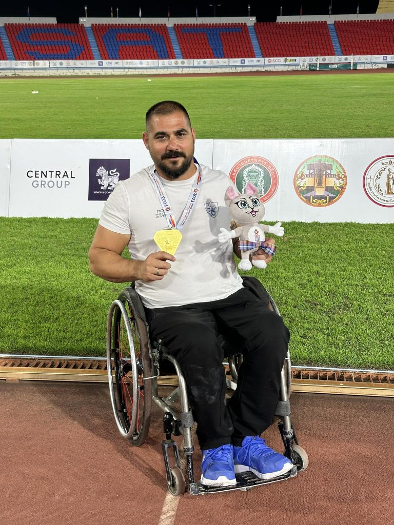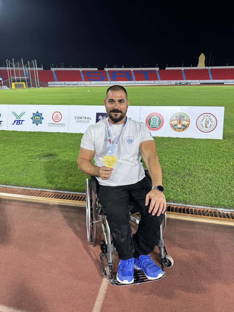 Ο ‘’Γίγαντας’’ της Κρήτης συμμετείχε στο International Wheelchair and Amputee Sports(IWAS )World Games στην πόλη Nakhon Ratchasima στην Ταϋλάνδη. Κατάφερε ξανά το… ακατόρθωτο για έναν… κοινό θνητό και ‘’ανέβασε’’ τον τόπο του την Γαλιά, την Μεσσαρά, την Κρήτη αλλά και όλη την Ελλάδα στον 7ο ουρανό και στο πρώτο σκαλί του βάθρου κάνοντας όλους να παραμιλούν για ένα ακόμη άκρως εντυπωσιακό άθλο του.