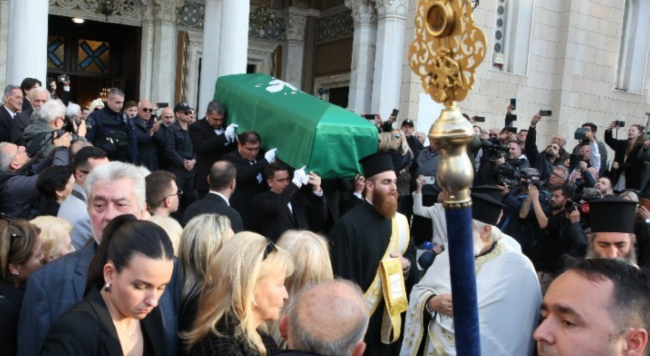 Νωρίτερα, στη Μητρόπολη συγκλόνισαν στους επικήδειους η κόρη του, Πόπη, ο Γιάννης Αλαφούζος, ο οποίος λύγισε και διέκοψε για λίγο τον επικήδειο με δάκρυα στα μάτια, ο αρχηγός του «τριφυλλιού» Φώτης Ιωαννίδης καθώς και ο Νίκος Καρούλιας, ο οποίος εκπροσώπησε τον Αντώνη Αντωνιάδη και διάβασε λόγια του.