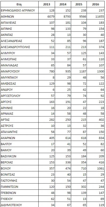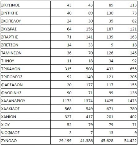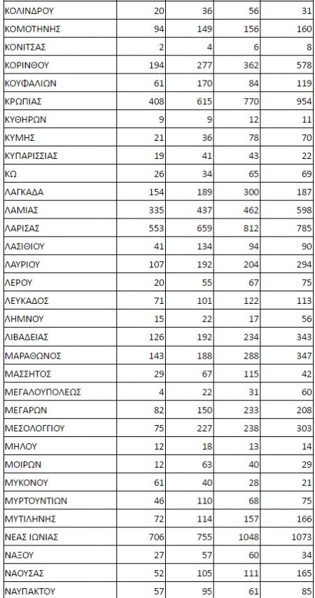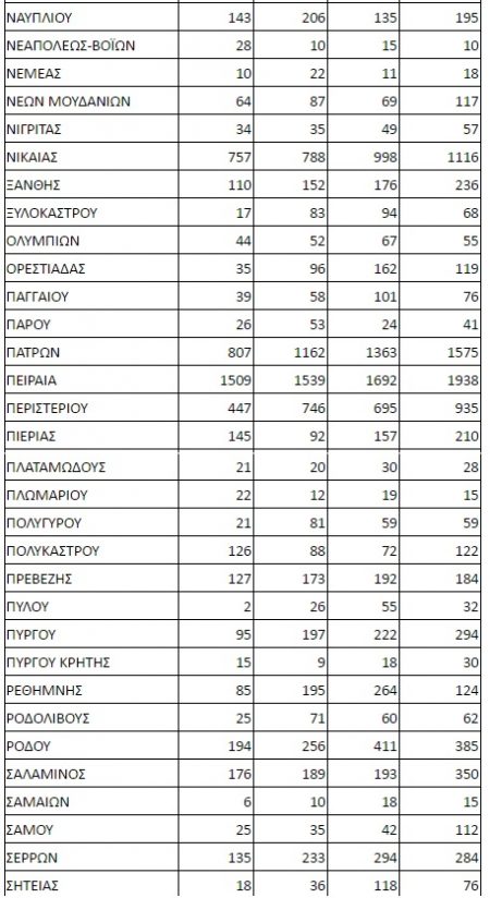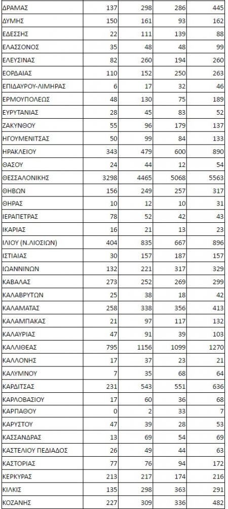 Ακολουθούν τα αναλυτικά στοιχεία ανά Ειρηνοδικείο σε όλη την Επικράτεια: