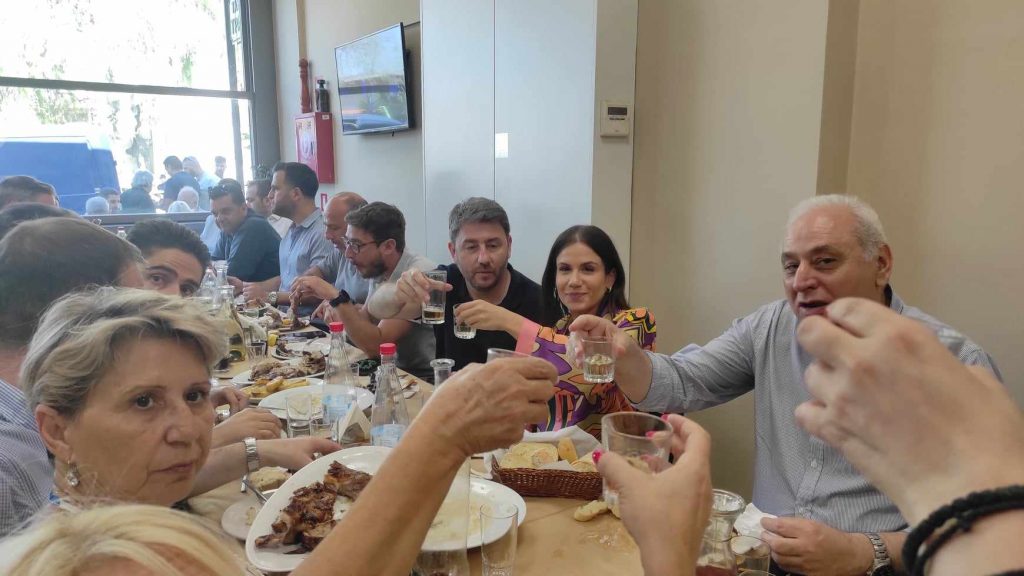 Αισιόδοξος για ακόμα καλύτερα αποτελέσματα για το ΠΑΣΟΚ ΚΙΝΑΛ στις δεύτερες εκλογές, ο κ. Ανδρουλάκης συνομίλησε σε χαλαρό κλίμα με φίλους και συνεργάτες και σιγοτραγούδησε το “Ήλιε ανάτειλε”.