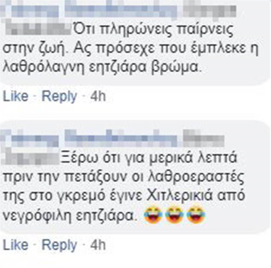 Κάτω από τα επίμαχα σχόλια οι χρήστες του διαδικτύου έχουν αντιδράσει έντονα, προσπαθώντας αφενός να συνειδητοποιήσουν τι έχει γραφτεί, ενώ άλλοι έχουν ήδη προχωρήσει στην αναφορά των λογαριασμών στην Δίωξη.