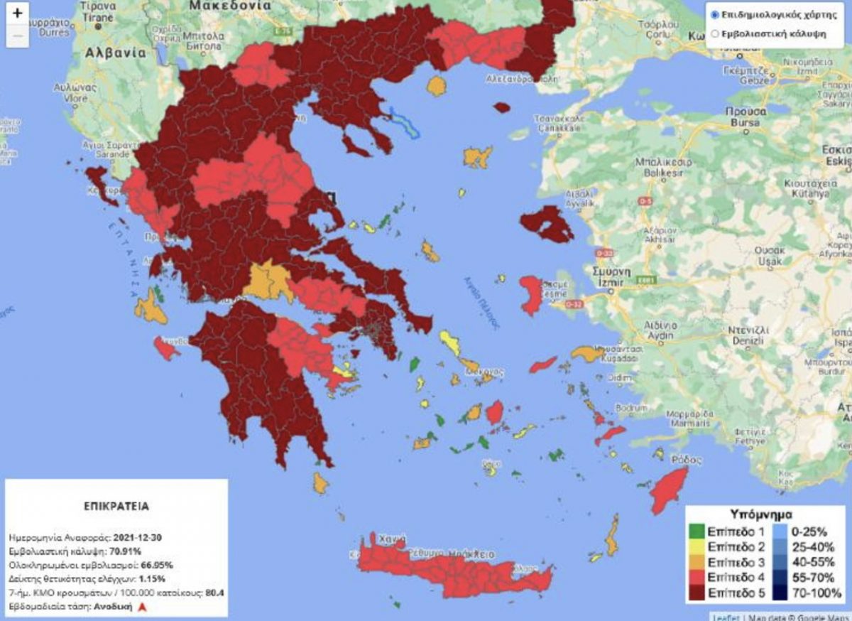 Στο επίπεδο «κόκκινο» του επιδημιολογικού χάρτη της Ελλάδας βρίσκονται πλέον και οι τέσσερις νομοί της Κρήτης