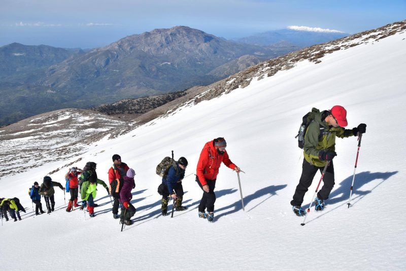Χειμερινή ανάβαση στον Τίμιο Σταυρό στον Ψηλορείτη και σε υψόμετρο 2.456μ, έκανε ο Ορειβατικός Σύλλογος Μοιρών χθες Κυριακή.