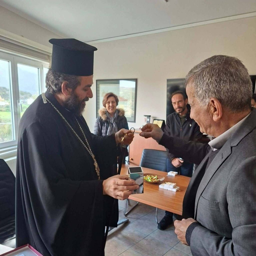 Εθιμοτυπική επίσκεψη στον Δήμαρχο Αμαρίου Παντελή Μουρτζανό πραγματοποίησε σήμερα, Παρασκευή 3 Απριλίου, ο νέος Μητροπολίτης Λάμπης Συβρίτου και Σφακίων Ιωακείμ, με αφορμή την ανάληψη των καθηκόντων του στη Μητρόπολη στο Σπήλι.