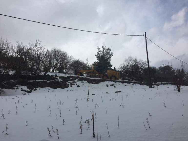 Επέμβαση από τα μηχανήματα του δήμου Ιεράπετρας στο Σελάκανο όπου συνεχίζει να χιονίζει και σήμερα