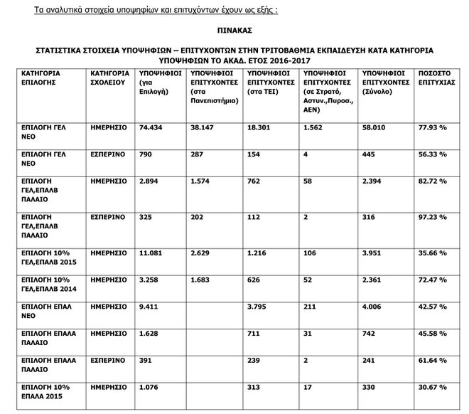 Σχετικά με τα αποτελέσματα εισαγωγής των επιτυχόντων στην Τριτοβάθμια Εκπαίδευση