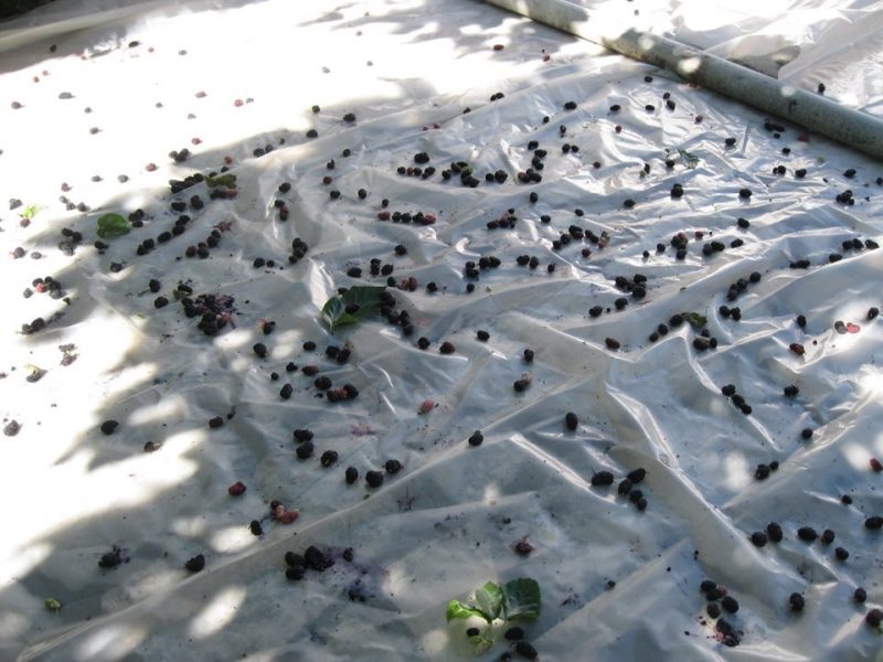 Έστρωναν κάτω μια παλιά πατανία, και ανέβαινε κάποιος ο πιο ευλύγιστος επάνω στη μουριά, συνήθως ο πιο νεαρός, και τίναζε δυνατά ένα – ένα τα κλαδιά!