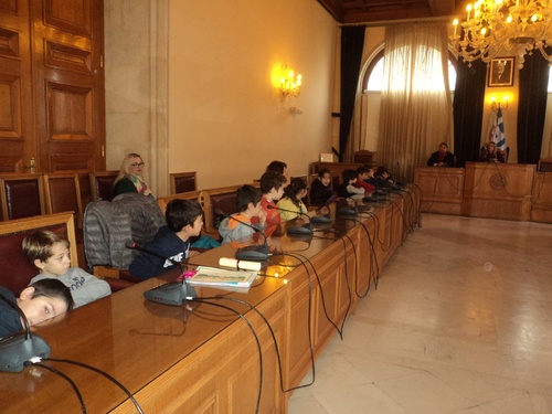 Οι μικροί μαθητές συνοδευόμενοι από τους δασκάλους τους, ξεναγήθηκαν στην ενετική Λότζια και άκουσαν με μεγάλη προσοχή την ιστορία του κτιρίου που σήμερα στεγάζει τις υπηρεσίες του Δήμου Ηρακλείου ενώ εντυπωσιάστηκαν από την αίθουσα του Δημοτικού Συμβουλίου.