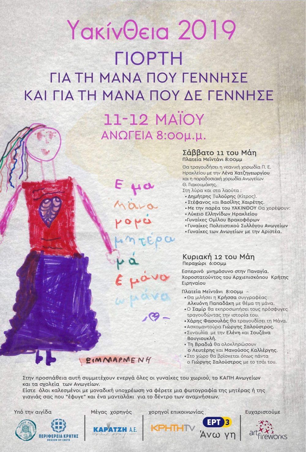Φέτος η αρχή των εκδηλώσεων γίνεται με τη γιορτή της μάνας 11 & 12 του Μάη.