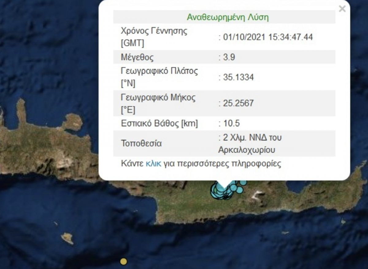 Δύο σεισμοί με διαφορά δευτερολέπτων πριν λίγο στο Αρκαλοχώρι – 4,6 Ρίχτερ και 4,3 Ρίχτερ Συνεχίζεται η έντονη μετασεισμική ακολουθία στην Κρήτη, μετά τον προχθεσινό...