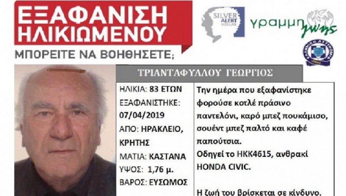 Ο 82χρονος πάσχει από άνοια Άκαρπες παραμένουν μέχρι στιγμής οι έρευνες για τον εντοπισμό του 82χρονου Νίκου Δερμιτζάκη, τα ίχνη του οποίου έχουν χαθεί...
