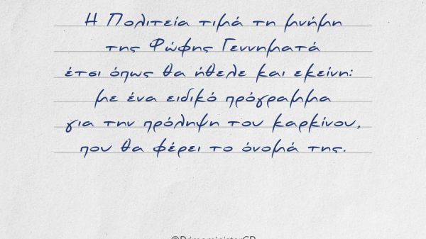 Η Πρόεδρος του Κινήματος Αλλαγής, η αγαπημένη φίλη και σύντροφος, Φώφη Γεννήματα, έφυγε σήμερα για το μεγάλο ταξίδι… Για την πολιτική δράση, το ήθος,...