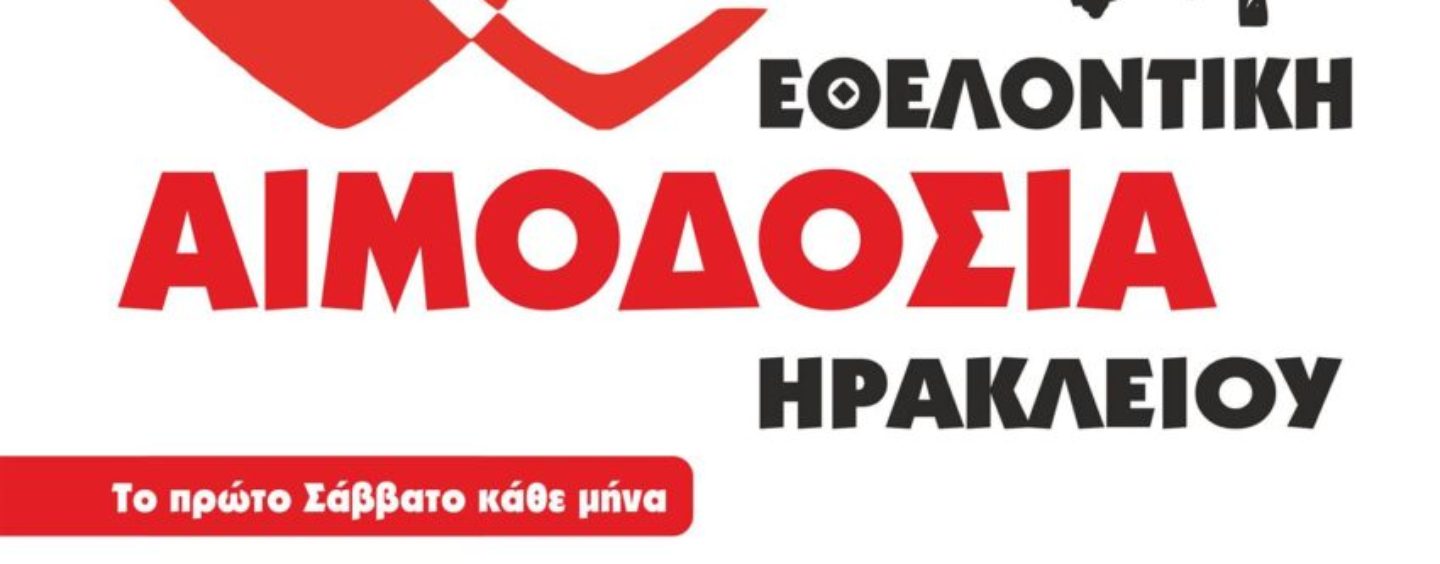 Εθελοντική Αιμοδοσία θα πραγματοποιηθεί το Σάββατο 3 Φεβρουαρίου στο κέντρο της πόλης της του Ηρακλείου (στο Αίθριο της Λότζια) και ώρες 10:00 – 13:30...