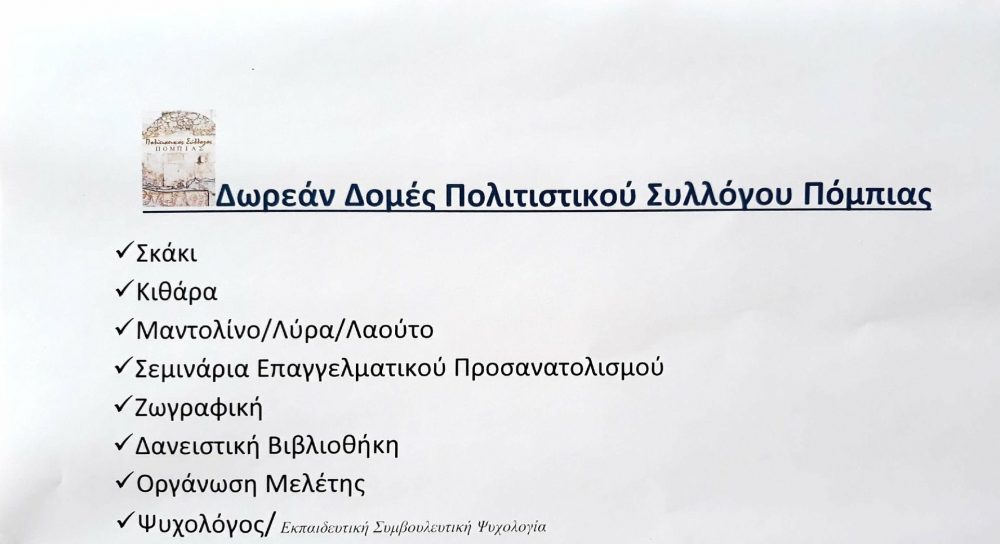 Ανακοίνωση από τον Πολιτιστικό Σύλλογο Πόμπιας Οπως κάνουμε στο τέλος κάθε τριμήνου ,θα δημοσιεύσουμε στο πίνακα ανακοινώσεων του ΠΣ Πόμπιας καθώς και σε καφενεία...