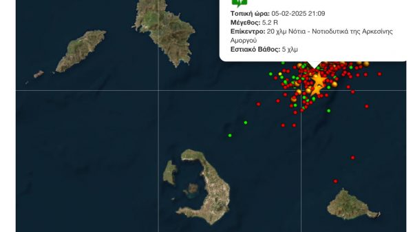 Συνεχίζει να σείεται η γη στις Κυκλάδες. Στις 15:04 σημειώθηκε νέα δόνηση, 5 Ρίχτερ, 22 Χλμ. ΝΝΔ της Αρκεσίνης Αμοργού. Οι κάτοικοι κρέμονται από τα χείλη των...