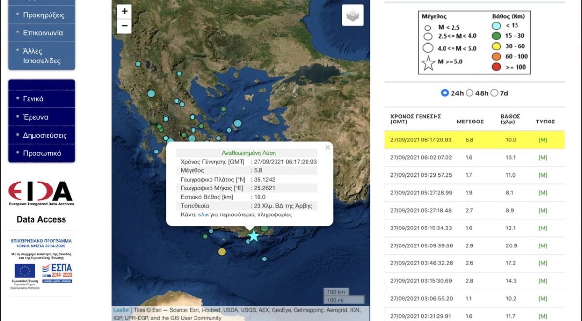 Νέος ισχυρός σεισμός στην Κρήτη, στις 07.45 το πρωί της Τρίτης Σύμφωνα με την αναθεωρημένη εκτίμηση ήταν εντάσεως 5,4 ρίχτερ και το επίκεντρο είναι στα 21...