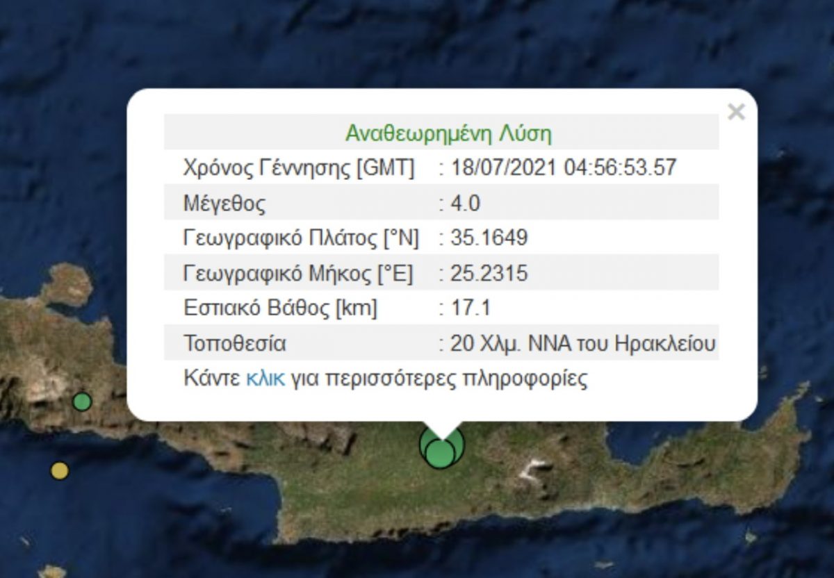Το επίκεντρο του σεισμού εντοπίζεται 20 Χλμ. ΝΝΑ του Ηρακλείου Νέος σεισμός, αισθητός στην Κρήτη έγινε λίγα λεπτά πριν από τις 08.00 το πρωί της Κυριακής με...