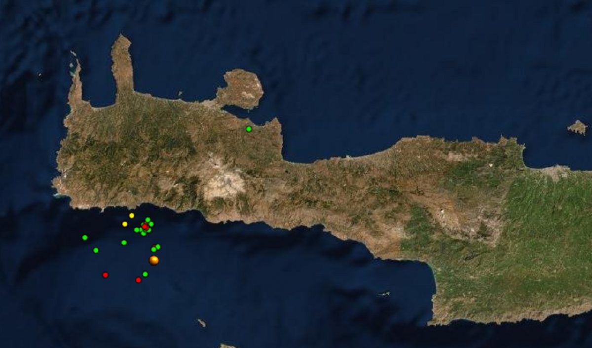 Συνεχίζονται οι σεισμικές δονήσεις στη θάλασσα, νότια του νομού Χανίων Σύμφωνα με το Γεωδυναμικό Ινστιτούτο, η ένταση ήταν 3,8 ρίχτερ, με επίκεντρο 31 χιλιόμετρα, δυτικά,...