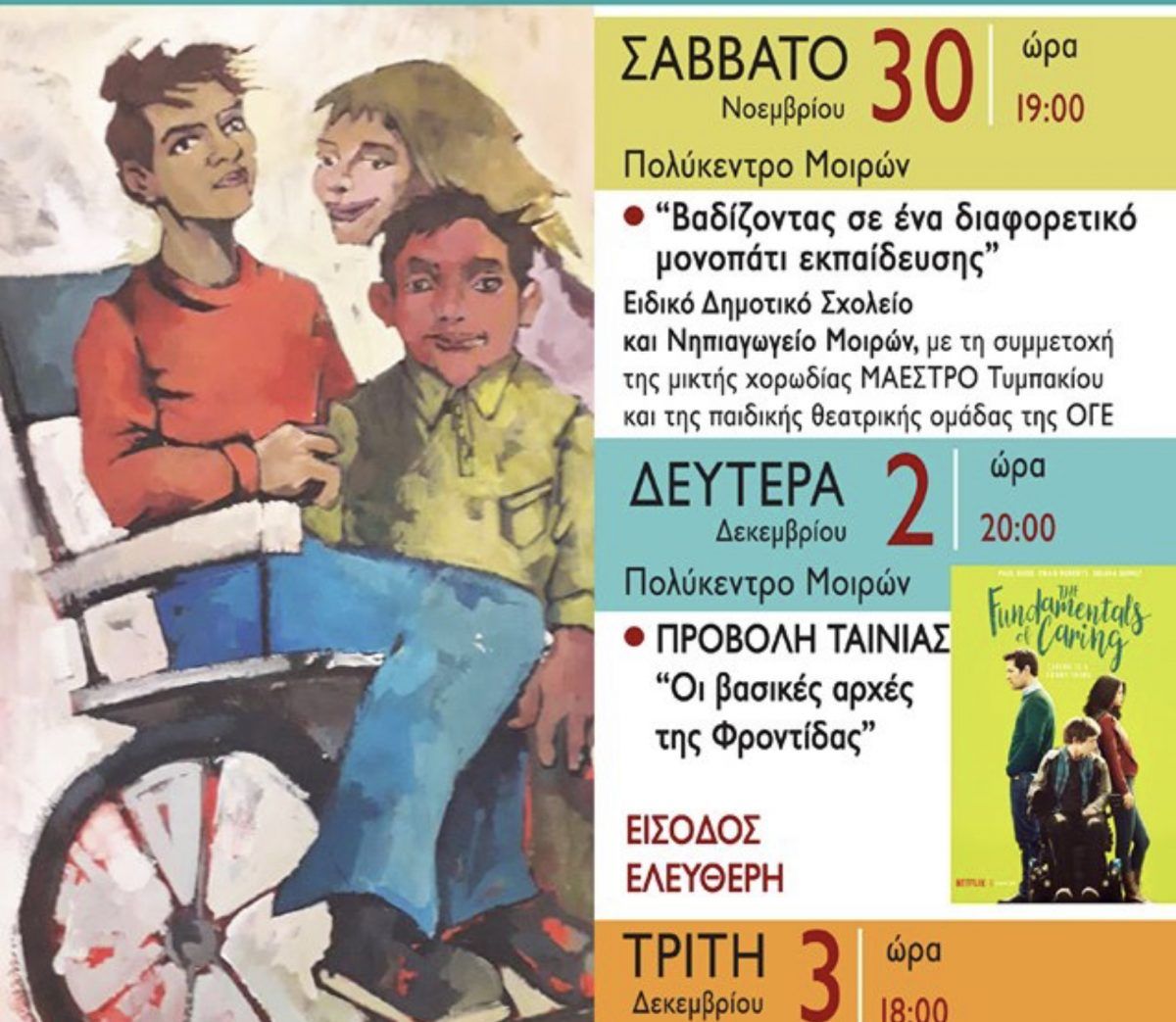 “Οι βασικές αρχές της φροντίδας” στις Μοίρες από το σύλλογο ΑμεΑ το «ΜΕΛΛΟΝ» Τη Δευτέρα 2/12/2019 στις 20:00 στο πολύκεντρο Μοιρών, θα πραγματοποιηθεί προβολή της...
