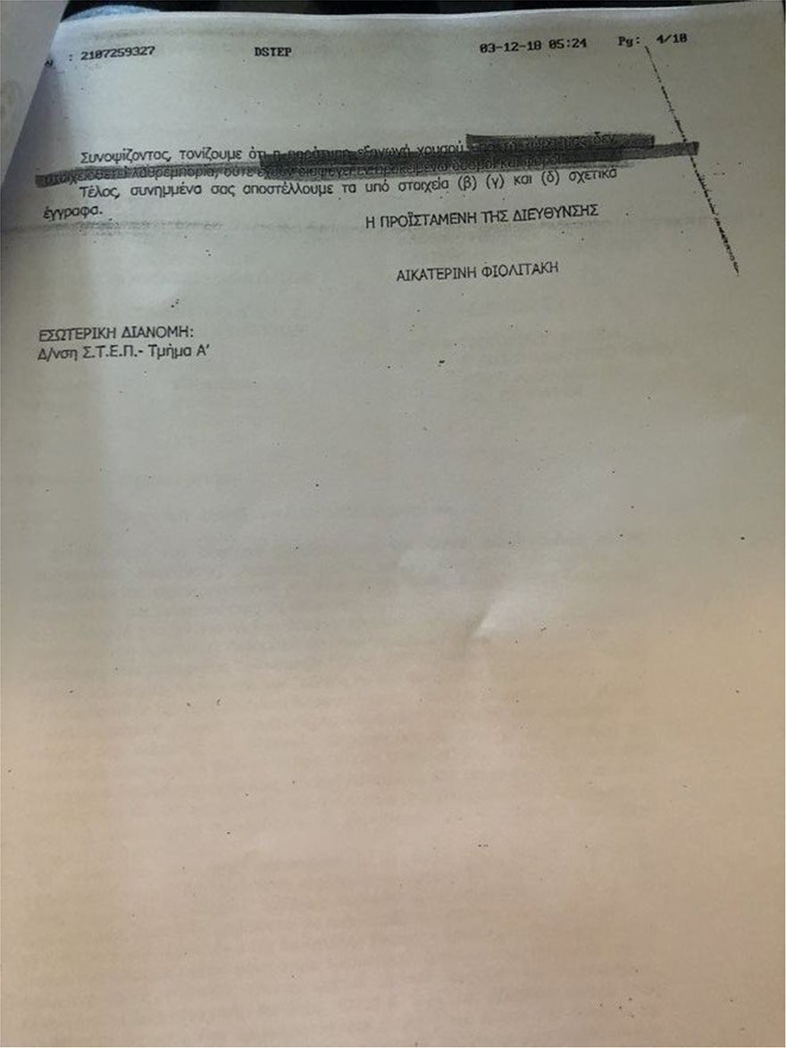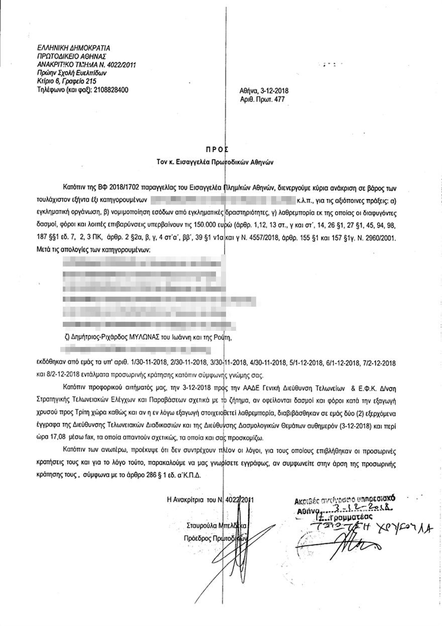 Το έγγραφο της ανακρίτριας προς την Εισαγγελία Πρωτοδικών Αθηνών αναφέρει μεταξυ των άλλων, τα εξής: