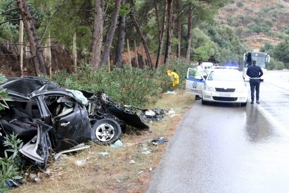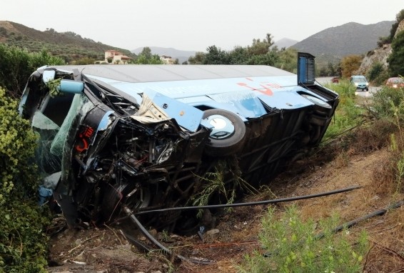 Από τη σφοδρή σύγκρουση το ΙΧ αγροτικό αυτοκίνητο τούμπαρε με αποτέλεσμα να μετατραπεί σε μια άμορφη μάζα από λαμαρίνες ενώ το τουριστικό λεωφορείο ανετράπη και κατέληξε στο πρανές του δρόμου.