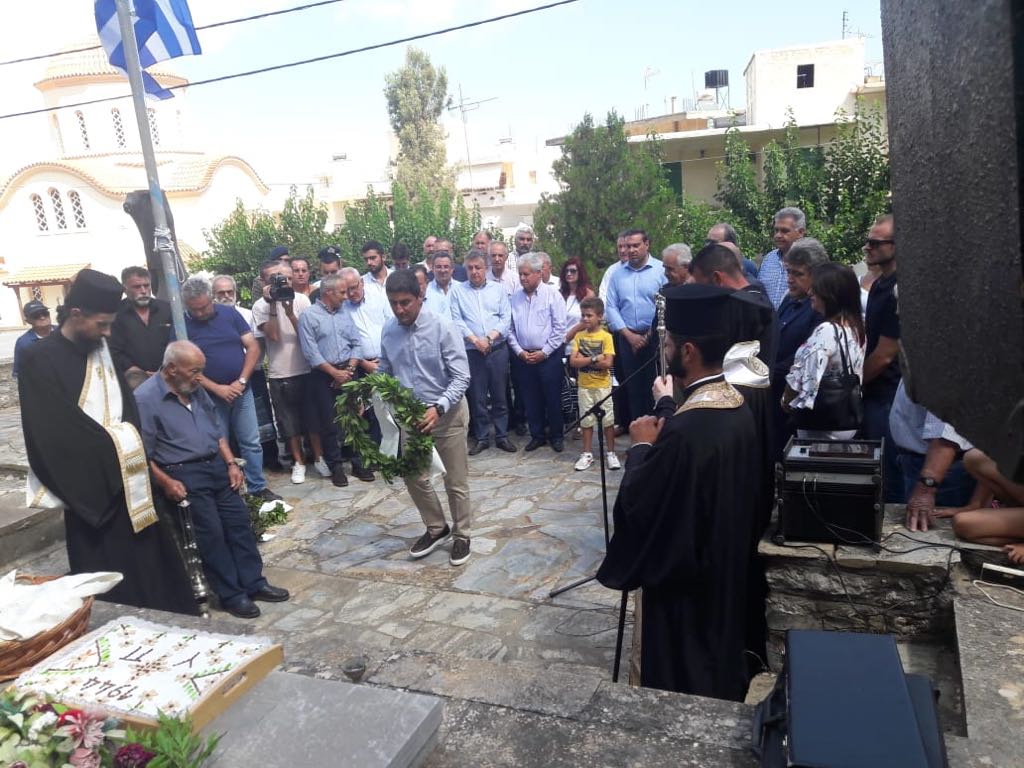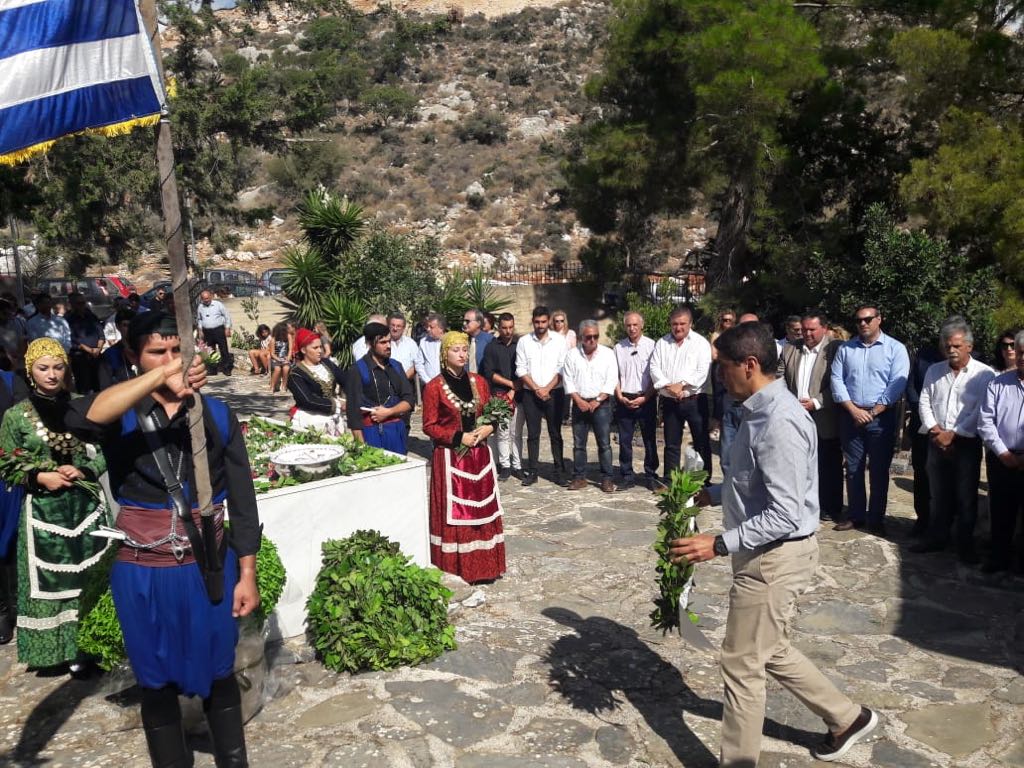 Τιμούμε σε τούτον εδώ τον ιερό τόπο, τους αγωνιστές που θυσιάστηκαν για μια ελεύθερη Κρήτη, για μια ελεύθερη Ελλάδα και διατηρούμε ζωντανή τη μνήμη των ηρώων που με αυταπάρνηση αντιμετώπισαν τη θηριωδία και την αγριότητα του ναζιστικού ολοκληρωτισμού».