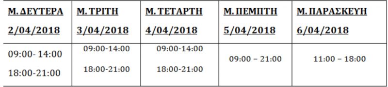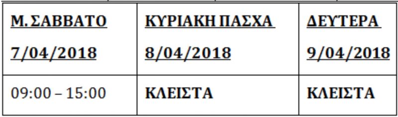Δείτε αναλυτικά το εορταστικό ωράριο: