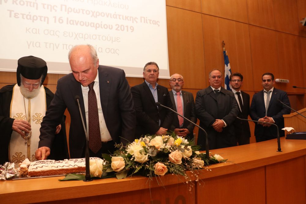Την πίτα ευλόγησε ο Σεβασμιότατος Αρχιεπίσκοπος Κρήτης κ. Ειρηναίος, ενώ την εκδήλωση τίμησαν με την παρουσία τους ο Περιφερειάρχης Κρήτης κ. Σταύρος Αρανουτάκης, εκπρόσωποι της τοπικής αυτοδιοίκησης, των αρχών και της επιχειρηματικής κοινότητας.