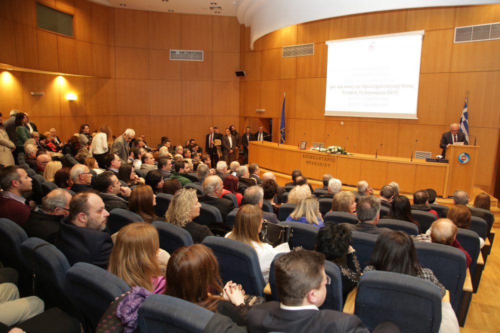 Η καθιερωμένη εκδήλωση για την έλευση του νέου έτους και την κοπή της Πρωτοχρονιάτικης πίτας πραγματοποιήθηκε χθες βράδυ στην κατάμεστη αίθουσα ΚΑΣΤΕΛΛΑΚΗ του Επιμελητηρίου Ηρακλείου.